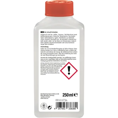 Verbindet gute Kalklösung und Geräteschonung mit einem hervorragenden biologischen Abbauverhalten, auch geeignet für Eierkocher, Wasserkessel, Tauchsieder, Töpfe, Edelstahlpfannen, Spülen, Oberflächen aus Edelstahl, Chrom, Keramik, Kunststoff usw., die besonders schonend entkalkt werden sollen. Auf der Basis von Zitronensäure, dadurch keine späteren Geschmackseinbußen oder Geruchsentwicklungen beim Entkalken. Mit Kindersicherheitsverschluss und abgedichtetem Verschlussdeckel.